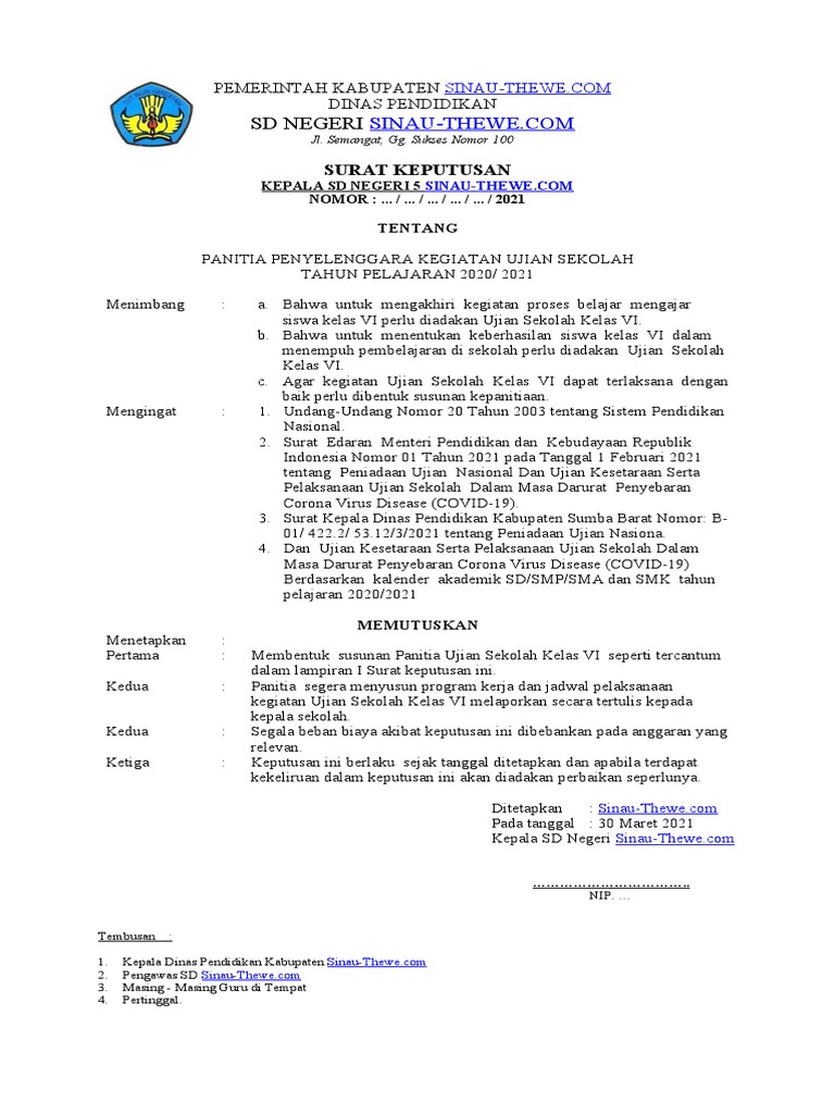Sk pengawa ujian sekolah 2021 : Penyelenggaraan ujian sekolah mata pelajaran pai dan budi pekerti merupakan inisiasi yang baik dalam konteks mengembangkan mutu dan kualitas pendidikan. Peraturan menteri pendidikan dan kebudayaan republik indonesia nomor 102 tahun 2015 tentang penyelenggaraan ujian sekolah/madrasah pada sekolah dasar/madrasah ibtidaiyah. Peserta ujian sekolah peserta ujian sekolah tp. Kip sekolah sasar 17,9 juta siswa di 2021.